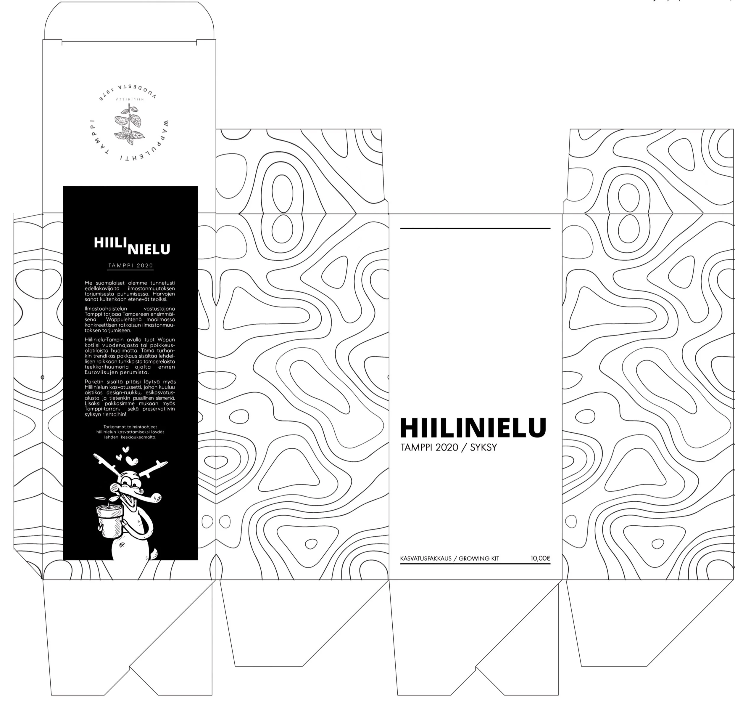 I implemented the design of Hiilinieli Tamppi packaging. The starting point of the design was an impressive and close-to-nature monochrome printed packaging.